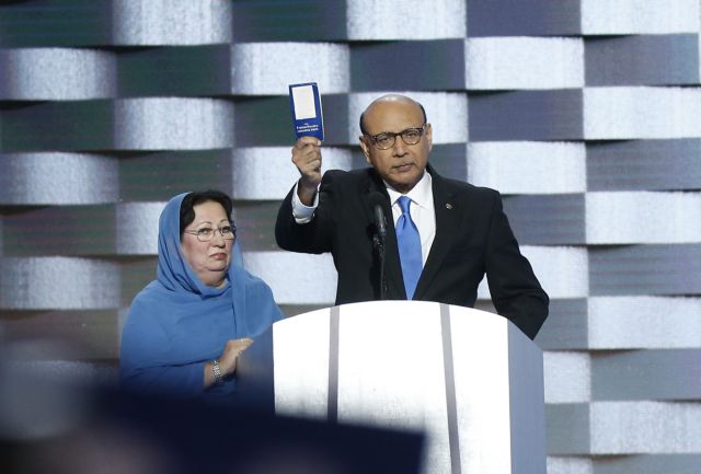 Ο πατέρας του λοχαγού Καν, που είναι δικηγόρος και κατάγεται από το Πακιστάν, είχε εκφωνήσει μια συγκλονιστική ομιλία στο συνέδριο του Δημοκρατικού Κόμματος, την περασμένη εβδομάδα, κατηγορώντας τον Τραμπ για το σχέδιό του να απαγορεύσει την είσοδο μουσουλμάνων στις ΗΠΑ για να αντιμετωπίσει την τρομοκρατία.