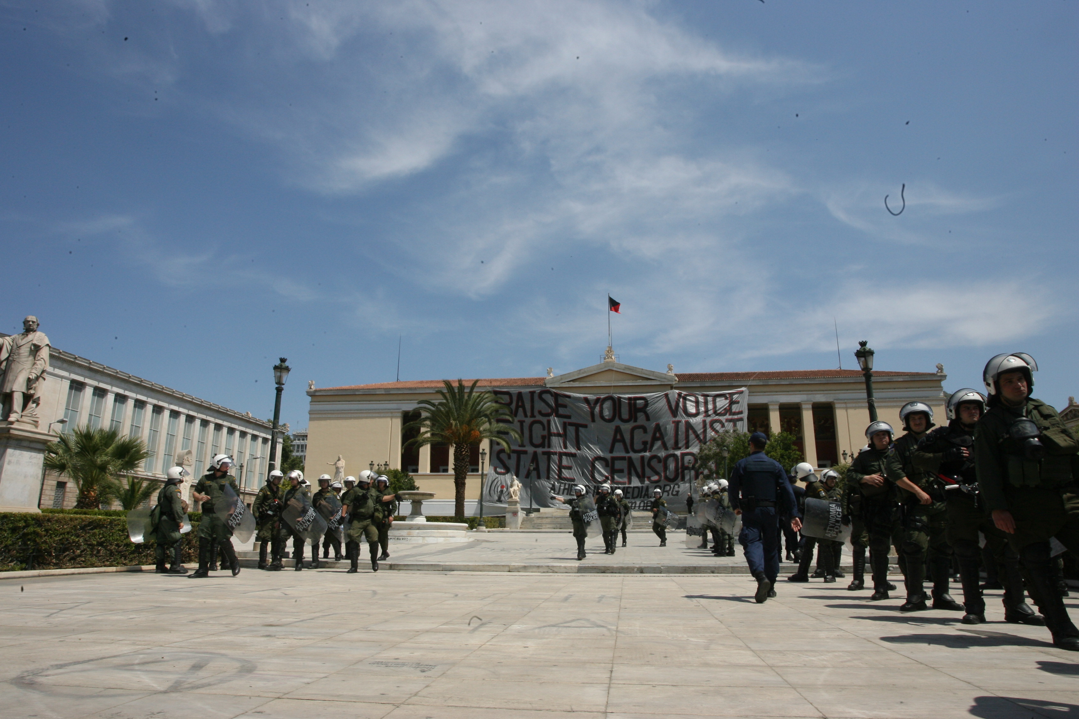 Πορεία στο κέντρο της Αθήνας πραγματοποίησε το βράδυ της Τετάρτης ομάδα περίπου 200 αντιεξουσιαστών, διαμαρτυρόμενοι για τις εκκενώσεις καταλήψεων στην Θεσσαλονίκη. Ισχυρή ήταν η αστυνομική παρουσία γύρω από την Βουλή.