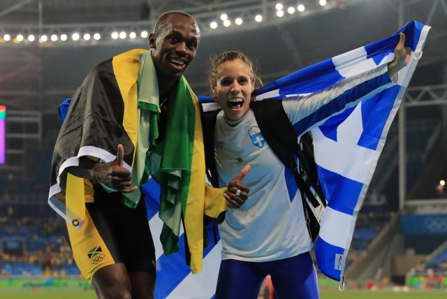 Με πλατύ χαμόγελο και οι δύο ποζάρουν ύστερα από τις επιτυχίες τους στο Ρίο. Οι δύο τους συναντήθηκαν αφότου η Ελληνίδα είχε ολοκληρώσει την προσπάθειά της στο επί κοντώ και λίγα λεπτά αργότερα ο Τζαμαϊκανός έγραφε ιστορία με το 9ο χρυσό της καριέρας του!