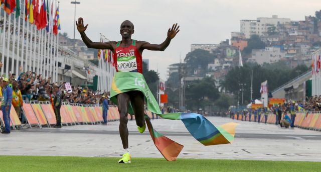 Μετά την Τζεμίμα Τζέλαγκατ Σουμγκόνγκ, που νίκησε τον Μαραθώνιο γυναικών, ήρθε ο Ελιούντ Κιπτσόγκ να νικήσει τον Μαραθώνιο ανδρών.