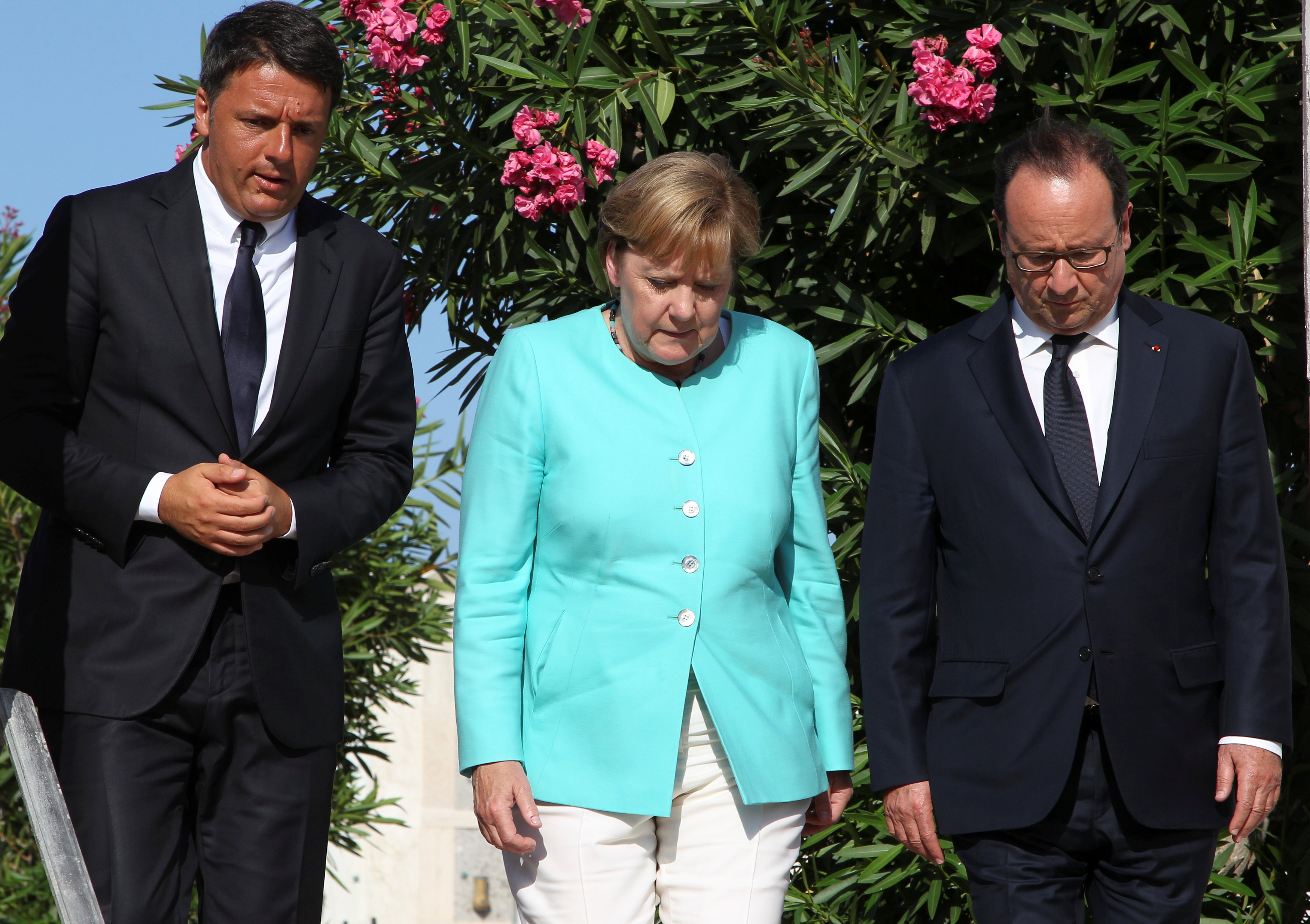 Πριν τις συνομιλίες οι Ρέντσι, Μέρκελ και Ολάντ απέτισαν φόρο τιμής στον «πατέρα της ενωμένης Ευρώπης» Αλτιέρο Σπινέλι με συμβολική επίσκεψη στον τάφο του στο μικρό ιταλικό νησί Βεντοτένε, απέναντι από τη Νάπολη.
