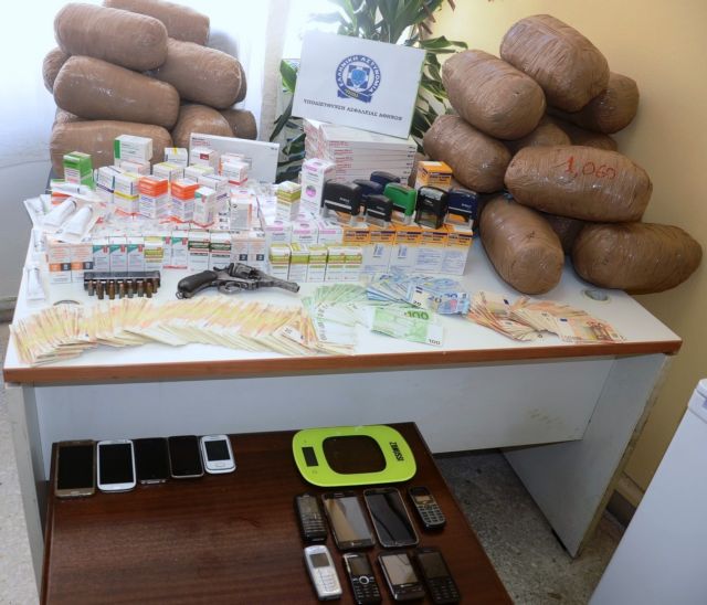 Κατασχέθηκαν 26 κιλά και 733 γραμμάρια ακατέργαστου χασίς, ηλεκτρονική ζυγαριά ακριβείας, 23.267 ευρώ, περίστροφο, 14 φυσίγγια, πλήθος συσκευών κινητής τηλεφωνίας και δύο Ι.Χ. επιβατικά αυτοκίνητα.