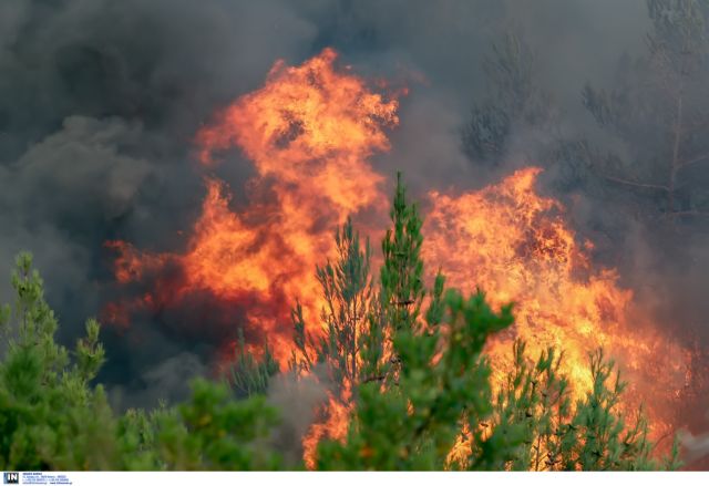 Για την κατάσβεση της φωτιάς επιχειρούν 22 πυροσβέστες με 9 οχήματα, δύο αεροσκάφη Καναντέρ και ισάριθμα Πετζετέλ.