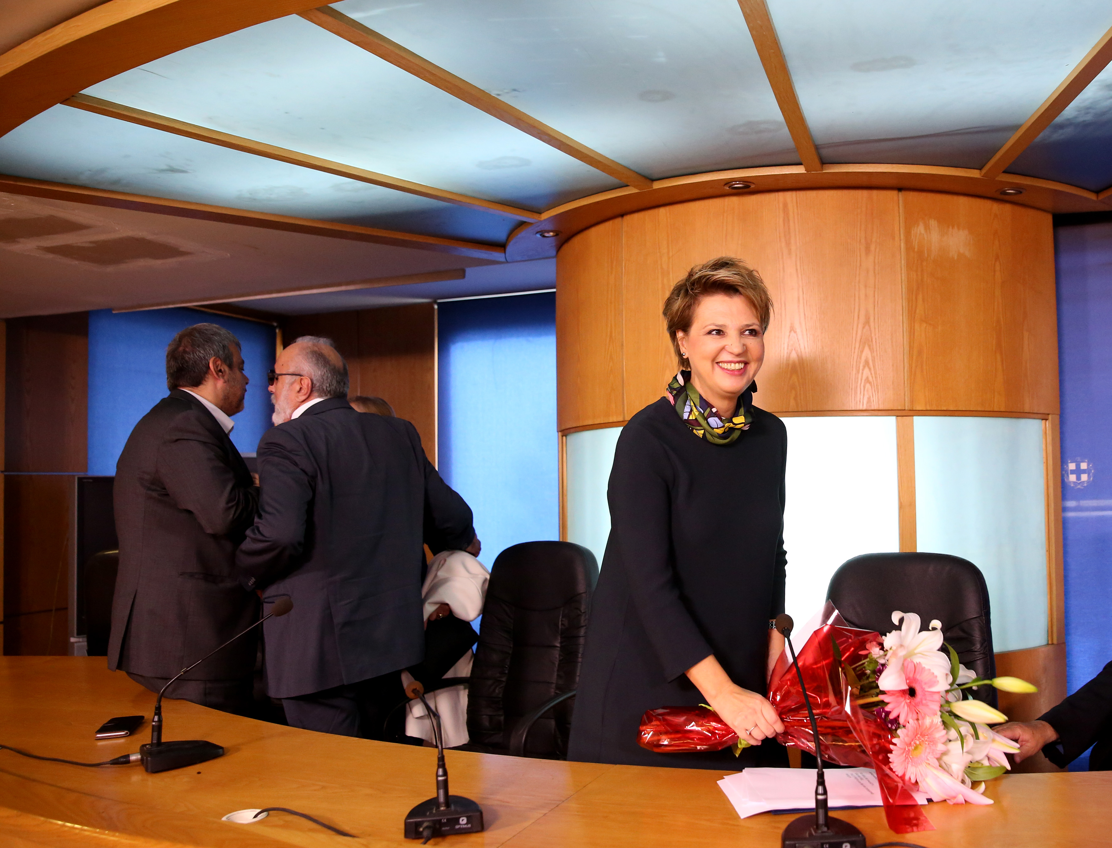 Η νέα υπουργός παρέλαβε από τον τέως αναπληρωτή υπουργό Εσωτερικών και Διοικητικής Ανασυγκρότησης και νυν υπουργό Επικρατείας Χριστόφορο Βερναρδάκη, ο οποίος αναφέρθηκε στο νομοθετικό έργο και τις δράσεις του υπουργείου και κυρίως στους νόμους για την αξιολόγηση των δημοσίων υπηρεσιών και τη δημιουργία Μητρώου Στελεχών Δημόσιας Διοίκησης, στην επανασύσταση του Κυβερνητικού Συμβουλίου Μεταρρύθμισης, στην υποχρεωτική Ηλεκτρονική Διακίνηση Εγγράφων στο Δημόσιο, στην επέκταση και αναβάθμιση της βάσης των ανοιχτών δεδομένων του Δημοσίου καθώς και στο προς ψήφιση νόμο για την κινητικότητα στο Δημόσιο. Ιδιαίτερη αναφορά έκανε στην κατάργηση των ιδιωτικών συμβάσεων στον τομέα του καθαρισμού, στο Δημόσιο.