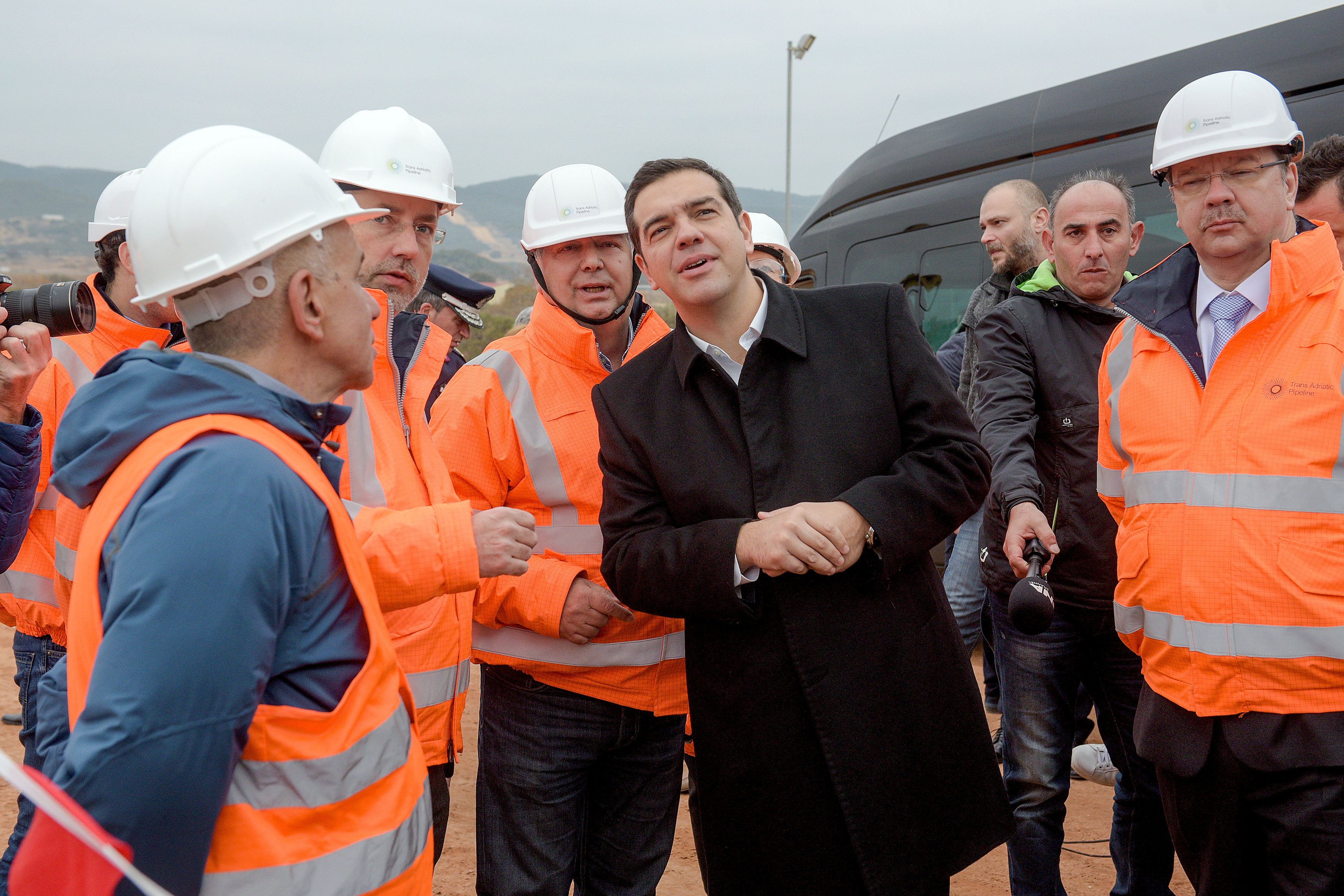Συνοδευόμενος από τα στελέχη του ΤΑΡ, ο Πρωθυπουργός ενημερώθηκε για την πρόοδο που έχουν σημειώσει μέχρι τώρα οι εργασίες στη χώρα, παρακολούθησε μέρος της διαδικασίας συγκόλλησης, ενώ ενδιαφέρθηκε για την διαδικασία αποκατάστασης της γης και του περιβάλλοντος.
