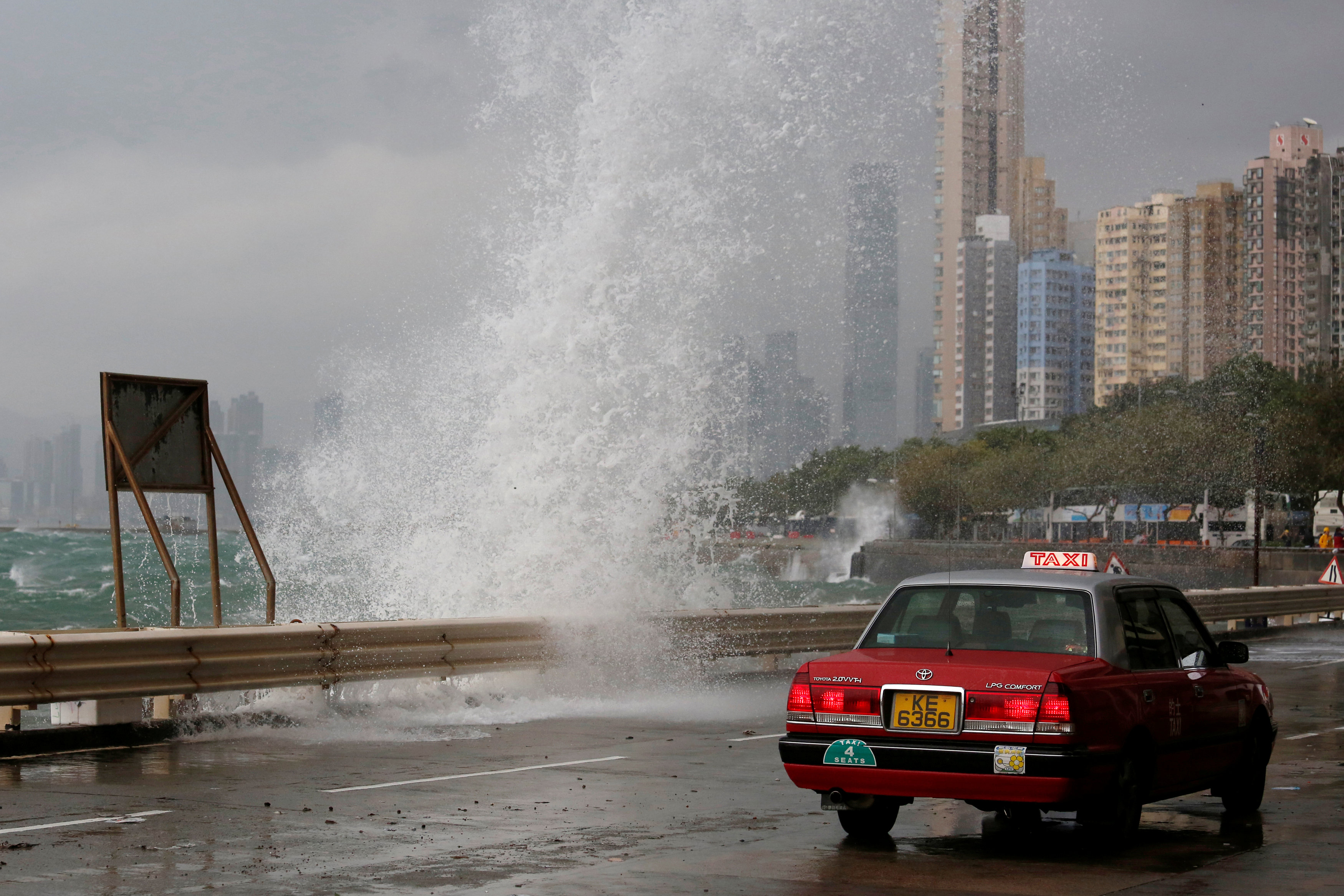 A taxi drives past a big wave on a waterfront as Typhoon Haima approaches in Hong Kong, China, October 21, 2016 . REUTERS/Bobby Yip (File: 2016-10-21T044307Z_2144102781_S1BEUIEMFJAB_RTRMADP_3_ASIA-STORM-HONGKONG.JPG )
