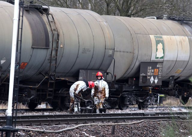 Από τον εκτροχιασμό και την έκρηξη που σημειώθηκε στο φορτηγό τρένο έχουν καταστραφεί τουλάχιστον 20 γειτονικά κτίρια στο χωριό Χιτρίνο, όπου σημειώθηκε το δυστύχημα.