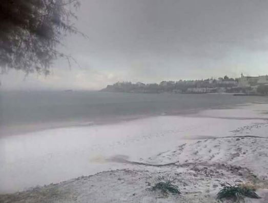 Είναι η πρώτη φορά που χιονίζει στην παραλία εδώ και 25 χρόνια, αναφέρει το CretaPost.gr.