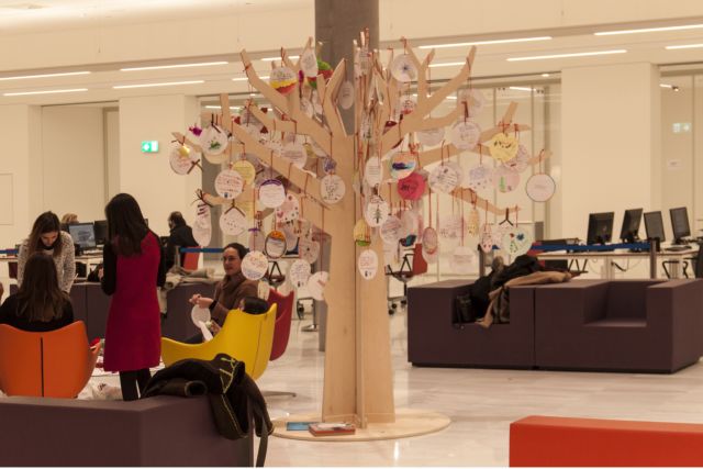 Παράλληλα, από τις 16 Δεκεμβρίου ως τις 15 Ιανουαρίου 2017 έχει τοποθετηθεί το Δέντρο των Ευχών του Δικτύου Ελληνικών Βιβλιοθηκών. Πρόκειται για το αποτέλεσμα 100 Εργαστηρίων Ευχών που πραγματοποιήθηκαν σε βιβλιοθήκες και σχολεία σε όλη την Ελλάδα με τον συντονισμό της Εθνικής Βιβλιοθήκης. Η δράση ενέπνευσε χιλιάδες παιδιά να κατασκευάσουν πρωτότυπες ευχές για το νέο έτος αξιοποιώντας λέξεις από αποσπάσματα βιβλίων.