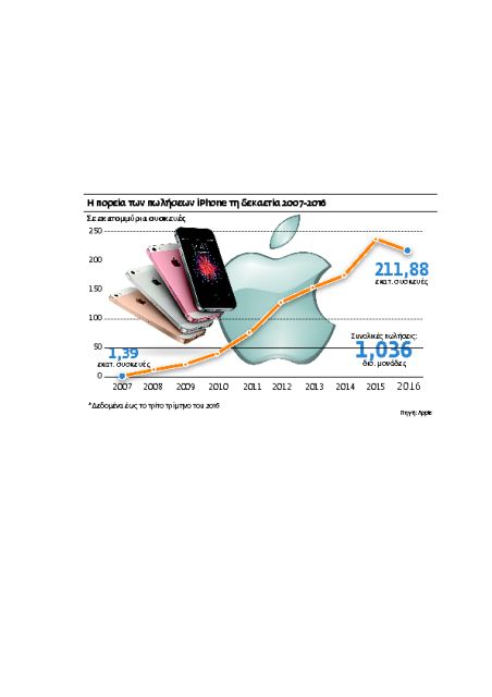 Το iPhone έχει φέρει δισεκατομμύρια δολάρια στα ταμεία της Apple. Περισσότερα από 650 δισ. και τα περισσότερα από αυτά μόλις την τελευταία τριετία. Από τον Ιούνιο του 2007, οπότε και ξεκίνησε η διάθεσή του στα καταστήματα, η εταιρεία έχει πουλήσει περισσότερες από ένα δισεκατομμύριο συσκευές σε όλο τον κόσμο, χαρίζοντας στο iPhone τον τίτλο του ενός από τα πιο επιτυχημένα και εμπορικά προϊόντα που έχουν κυκλοφορήσει ποτέ. Μόνο το 2016 οι πωλήσεις του iPhone δημιούργησαν έσοδα ύψους 136,7 δισ. δολαρίων για την Apple. Ωστόσο, οι πωλήσεις αυτές είναι κατά 3% χαμηλότερες συγκριτικά με αυτές του 2015. Γεγονός το οποίο οι αναλυτές ερμηνεύουν ως απαρχή μιας καθοδικής πορείας. Επιπλέον, η μετοχή της εταιρείας έχει χάσει το 11% της αξίας της από τον Φεβρουάριο του 2015, όταν η τιμή της είχε φθάσει σε επίπεδο-ρεκόρ.