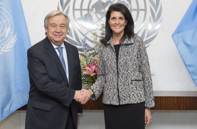 Η πρώτη συνάντηση μεταξύ της Χέιλι και του Γκουτέρες γίνεται σε χρονική περίοδο κατά τηνοποία τα αμερικανικά ΜΜΕ κάνουν λόγο για ένα προεδρικό διάταγμα που θα στερήσει από τον διεθνή οργανισμό οικονομική βοήθεια εκ μέρους των ΗΠΑ ύψους πολλών δισεκατομμυρίων δολαρίων.