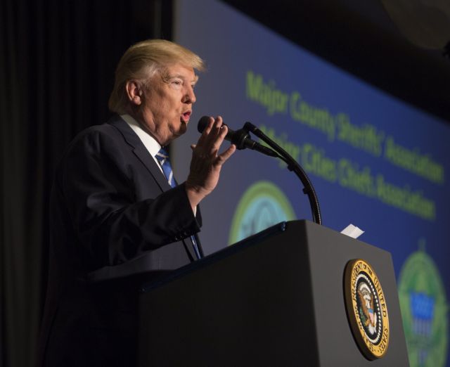 Ο Τραμπ, μιλώντας σε στελέχη των δυνάμεων της τάξης, κατηγόρησε τα δικαστήρια ότι παίρνουν «πολιτικές αποφάσεις».