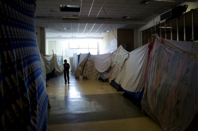 «Οι διακινητές δεν έρχονται εδώ. Μιλάμε μαζί τους στο τηλέφωνο. Ζήτησαν 3.000-4.000 ευρώ για να περάσουν την οικογένειά μου. Δεν έχουμε τόσα χρήματα» συνεχίζει η Σαμίρα ενώ είμαστε καθισμένοι στο χαλί έξω από τη σκηνή της, χωρίς να φαινόμαστε από τις διπλανές σκηνές χάρη στο αυτοσχέδιο παραβάν. «Τα χαλιά τα αγοράσαμε τους τελευταίους τρεις μήνες. Στην αρχή δεν είχαμε ούτε σκηνή. Πριν από έναν μήνα μάς έφεραν θέρμανση. Το νερό όμως παραμένει κρύο κάθε μέρα. Τα ντους δεν είναι αρκετά (σ.σ.: μετράμε μόλις πέντε γυναικεία ντους για τις περίπου 300 γυναίκες που ζουν στην αίθουσα Αφίξεων!). Μας λένε ότι θα μας μεταφέρουν σε δύο μήνες (σ.σ.: το Ελληνικό πρέπει να εκκενωθεί ως το Ιούνιο, όταν θα ξεκινήσει η ανάπλαση, αν τελικά προχωρήσει η επένδυση και δεν κολλήσει στα διάφορα προσκόμματα). Αλλά εμείς δεν θέλουμε να πάμε σε άλλη δομή. Κουραστήκαμε να ζούμε έναν χρόνο σε σκηνή. Θέλουμε να πάμε σε σπίτι».