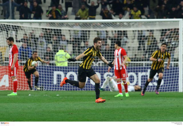H AEK πήρε το ντέρμπι της 21ης αγωνιστικής της Super League επικρατώντας 1-0 του Ολυμπιακού στο ΟΑΚΑ. Το μοναδικό τέρμα της αναμέτρησης σημείωσε ο Αϊντάρεβιτς στο 34΄ με την μπάλα να αλλάζει πορεία στο κεφάλι του Ντα Κόστα. Με δέκα παίκτες ολοκλήρωσαν τον αγώνα οι «ερυθρόλευκοι» λόγω αποβολής του Μποτία (2η κίτρινη) στο 75΄.