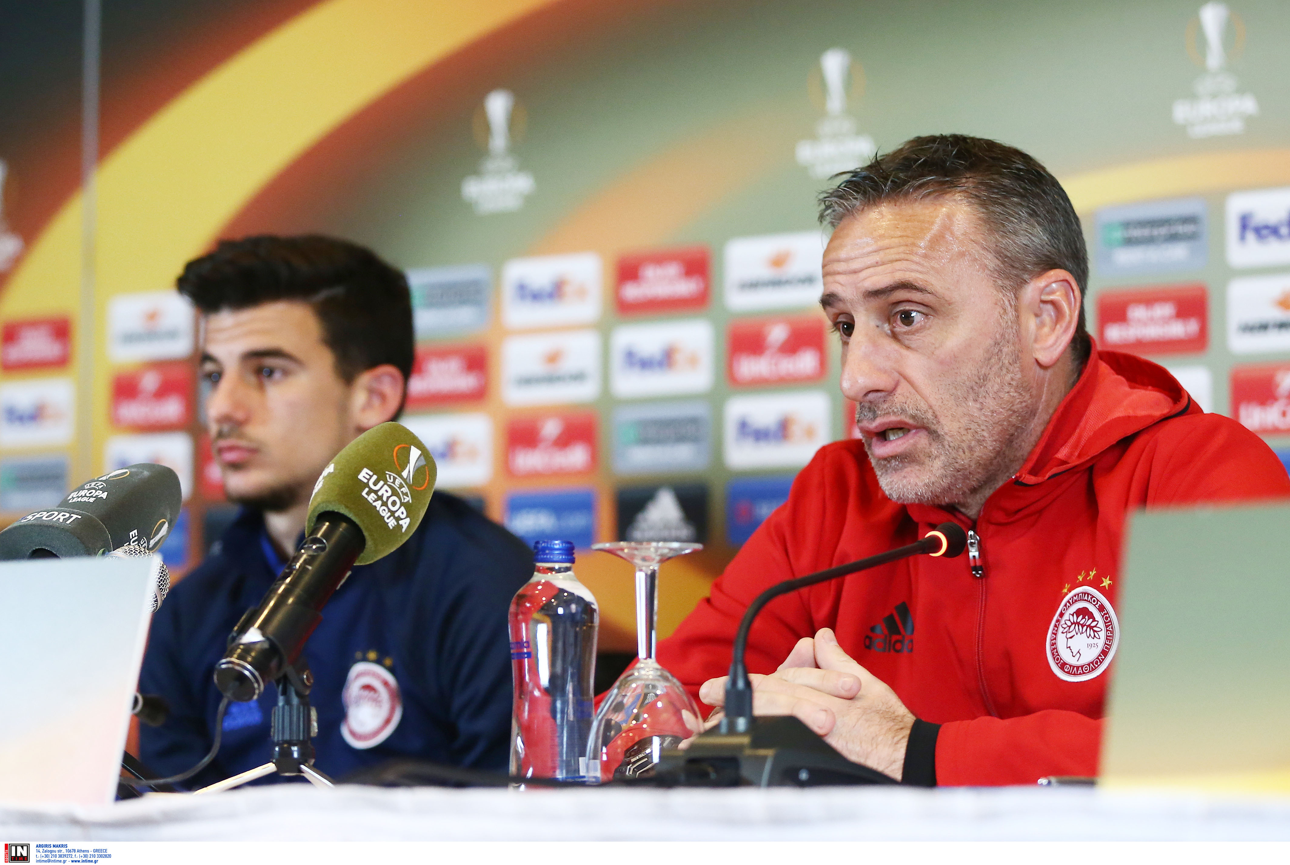 Κάθε παιχνίδι είναι σημαντικό για τον Ολυμπιακό και ειδικά το αυριανό που δίνει μία πρόκριση. Θεωρείτε ότι υπάρχει στο παιχνίδι της Οσμανλισπόρ που μπορείτε να το εκμεταλλευτείτε; Και επίσης αν γνωρίζετε την κατάσταση του αγωνιστικού χώρου και πόσο μπορεί να επηρεάσει την εξέλιξη του παιχνιδιού αυτό; «Όλα τα παιχνίδια είναι σημαντικά για εμάς. Πάντα το πιο σημαντικό είναι το επόμενο. Πιστεύω ότι στο προηγούμενο παιχνίδι κάναμε καλά τη δουλειά μας όσον αφορά στην άμυνα. Ελέγξαμε τις γρήγορες αντεπιθέσεις που είναι το δυνατό σημείο του αντιπάλου. Πιστεύω ότι επιθετικά θα μπορούσαμε να ήμασταν καλύτεροι και είναι κάτι που το έχουμε δουλέψει. Θέλουμε σε όλο το παιχνίδι να είμαστε μπροστά και να είμαστε πιστοί στη φιλοσοφία μας που είναι να δημιουργήσουμε φάσεις. Ξέρουμε ότι αν σκοράρουμε θα είναι σημαντικό γιατί θα προβληματίσει τον αντίπαλό μας. Πρέπει να ρυθμίσουμε τα δυνατά σημεία του αντιπάλου. Οσον αφορά στον αγωνιστικό χώρο δεν τον έχουμε δει. Προτιμήσαμε να μην προπονηθούμε εδώ, αλλά στην Αθήνα γιατί κερδίσαμε μία μέρα παραπάνω στην στρατηγική μας. Αυτό που έχουμε στο μυαλό μας είναι ότι θα συναντήσουμε έναν κακό αγωνιστικό χώρο, όπως συναντήσαμε στην Τρίπολη και προσαρμοστήκαμε γρήγορα. Περιμένουμε πως θα είναι σε κακή κατάσταση, αλλά θα προσαρμοστούμε».
