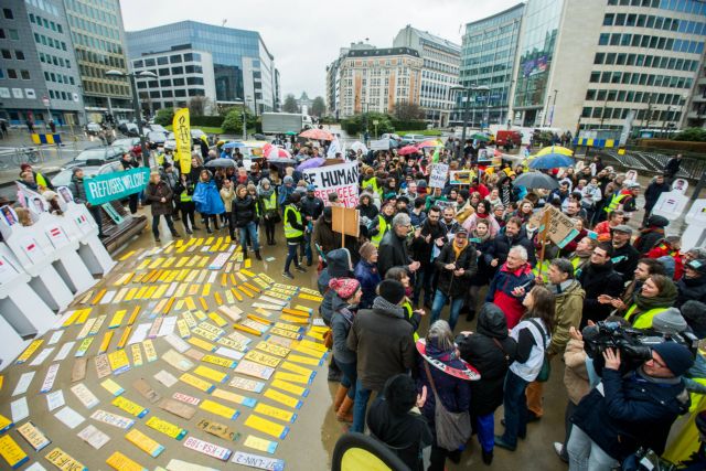 Εκατοντάδες άνθρωποι διαδήλωσαν τη Δευτέρα στις Βρυξέλλες ζητώντας την τήρηση της συμφωνίας από την πλευρά των κρατών-μελών της ΕΕ για μετεγκατάσταση προσφύγων και μεταναστών που παραμένουν στην Ελλάδα, ενώ πολλοί από τους διαδηλωτές προσφέρθηκαν να μεταφέρουν πρόσφυγες με τα δικά τους αυτοκίνητα.