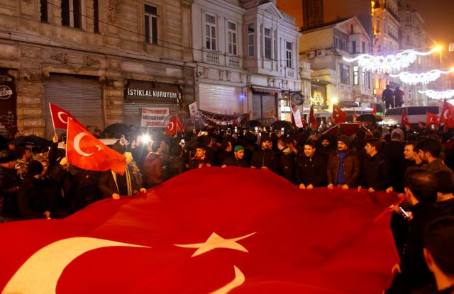 Την ίδια ώρα, η ολλανδική αστυνομία συγκρούστηκε το βράδυ του Σαββάτου με διαδηλωτές που συγκεντρώθηκαν έξω από το τουρκικό προξενείο στο Ρότερνταμ, διαμαρτυρόμενοι για το «μπλόκο» στον Μεβλούτ Τσαβούσογλου. Η αστυνομία έκανε χρήση κανονιών νερού για να διαλύσει τους περίπου 1.000 διαδηλωτές.