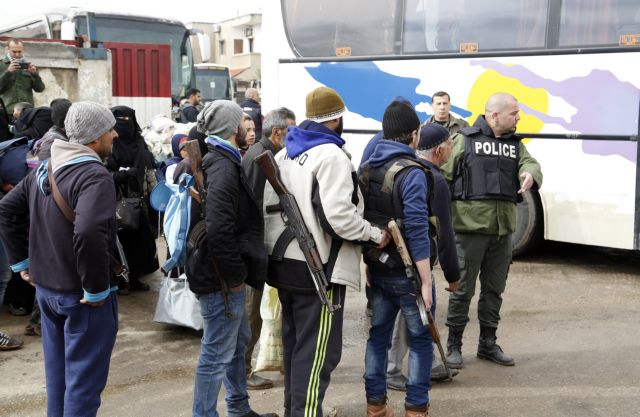 Τα δύο πρώτα λεωφορεία, που μετέφεραν τους αντάρτες και τις οικογένειές τους, αναχώρησαν το πρωί από τη συνοικία αλ-Ουέιρ, με κατεύθυνση άλλες ανταρτοκρατούμενες περιοχές στη βόρεια Συρία.