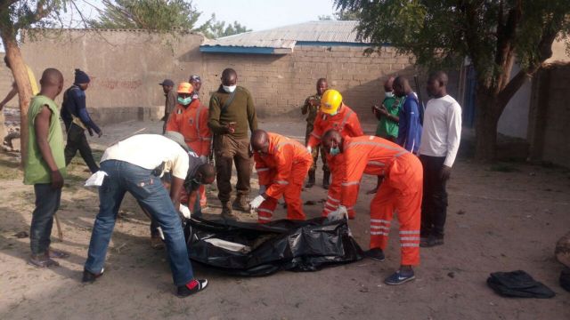 Ένας άνδρας και δύο γυναίκες ανατίναξαν τα εκρηκτικά με τα οποία ήταν ζωσμένοι όταν τους εμπόδισε να προχωρήσουν ένα μέλος της Civilian JTF, μιας εγκεκριμένης από την κυβέρνηση πολιτοφυλακής, λίγο έξω από τη Μαϊντουγκούρι, την πόλη που έχει πληγεί χειρότερα από κάθε άλλη στη Νιγηρία από την εξέγερση της τζιχαντιστικής οργάνωσης Μπόκο Χαράμ που διαρκεί οκτώ χρόνια.