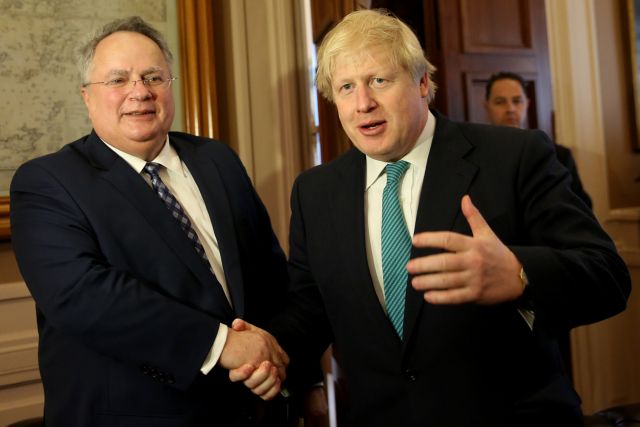 Τις στενές σχέσεις Ελλάδας – Ηνωμένου Βασιλείου επιβεβαίωσαν οι υπουργοί Εξωτερικών των δύο χωρών Νίκος Κοτζιάς και Μπόρις Τζόνσον. Σε μία εγκάρδια κατ’ ιδίαν συνάντηση, η οποία ξεπέρασε το δίωρο, οι δύο υπουργοί είχαν μία εκτεταμένη και αναλυτική συζήτηση για τις διμερείς σχέσεις στην μετά Brexit εποχή, το Κυπριακό, τη Συρία, τα Δυτικά Βαλκάνια, τη Ρωσία και τις ΗΠΑ.
