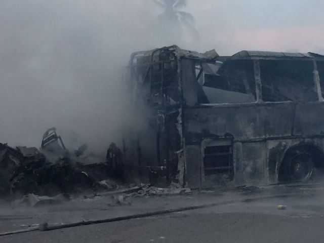 Η αστυνομία ανέφερε ότι το λεωφορείο ταξίδευε στα παράλια του Ειρηνικού, όταν συγκρούστηκε με το βυτιοφόρο, που είχε φύγει από την περιοχή Λαζάρο Καντρένας με πορεία προς το εσωτερικό της χώρας.