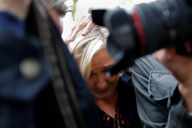 Οι άνδρες της ασφάλειας της Μαρίν Λεπέν έσπευσαν αμέσως να την προστατεύσουν και η ακροδεξιά υποψήφια για τον προεδρικό θώκο της Γαλλίας εισήλθε αμέσως στο κτίριο.