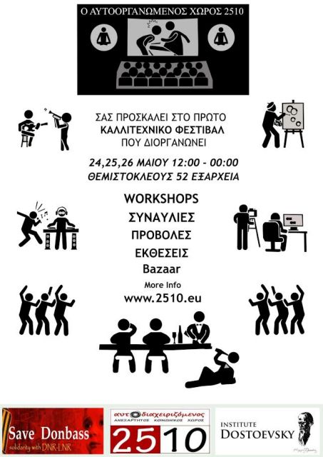 Κάτι ξεχωριστό γίνεται στα Εξάρχεια το τριήμερο 24-26 Μαΐου. Ο αυτοδιαχειριζόμενος ανεξάρτητος χώρος δημιουργίας και έμπρακτης αλληλεγγύης, 2510, επί της Θεμιστοκλέους 52, ετοιμάζει ένα τριήμερο καλλιτεχνικό φεστιβάλ καλωσορίζοντας το καλοκαίρι που έρχεται.