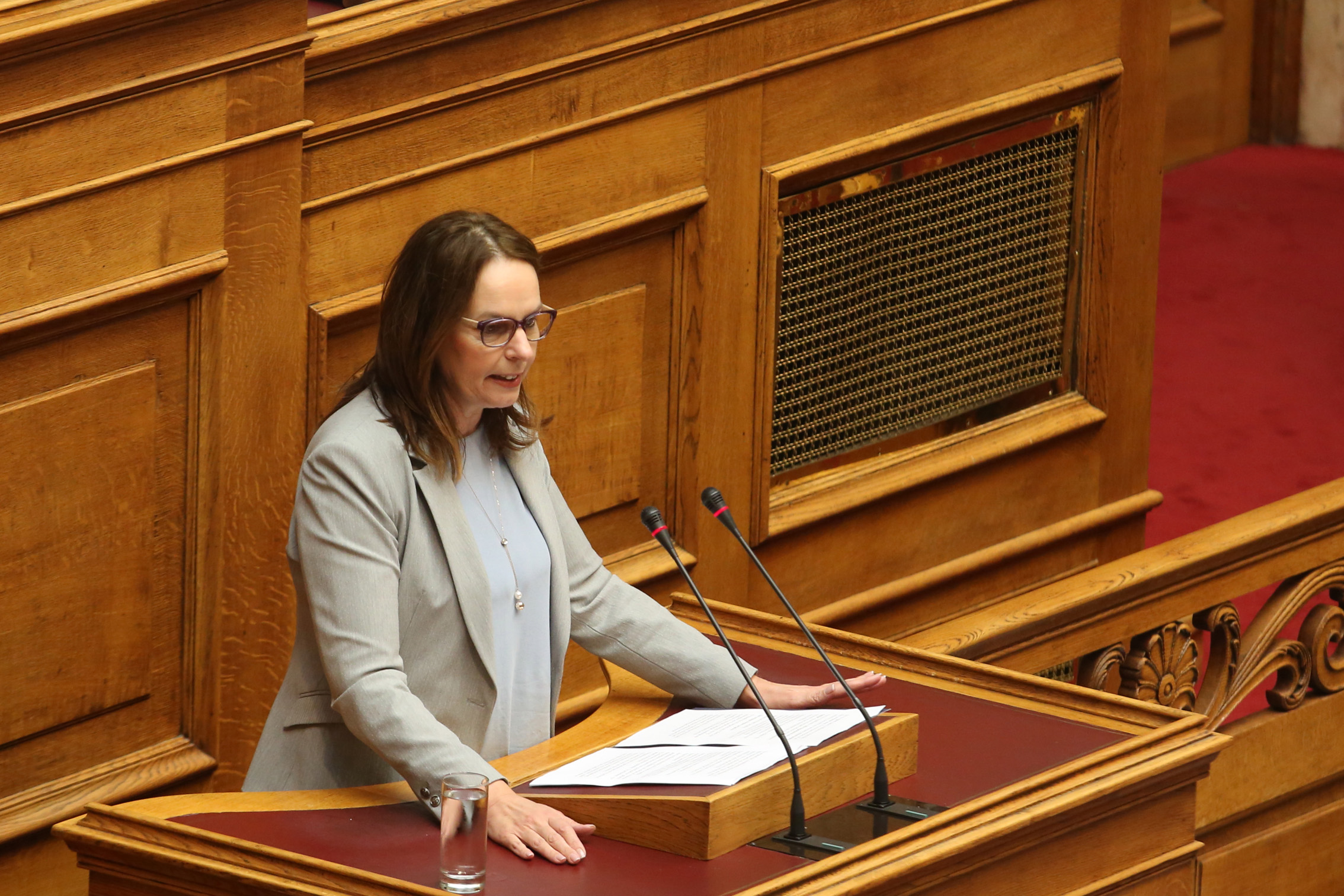 «Έχετε θράσος οι βουλευτές της ΝΔ και του ΠΑΣΟΚ να μιλάτε για το αφορολόγητο που χάθηκε το 2013, για να μειωθεί κατά 10 εκατοστιαίες μονάδες ο ανώτατος συντελεστής για τα πολύ υψηλά εισοδήματα. Υπάρχει μνήμη σε αυτή τη χώρα» είπε η υφυπουργός.