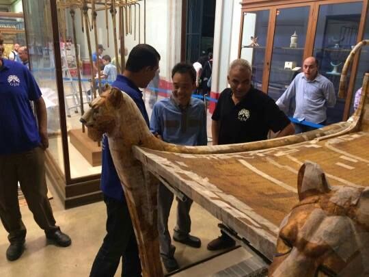 Σύμφωνα με τη σελίδα στο Facebook του υπουργείου Αρχαιοτήτων, που επικαλείται τον Τάρεκ Τάουφικ, υπεύθυνο του Μεγάλου Αιγυπτιακού Μουσείου (GEM), τα δύο κομμάτια μεγάλης αξίας τυλίχτηκαν μέσα σε υλικά χωρίς οξύτητα για να μεταφερθούν με ασφάλεια.