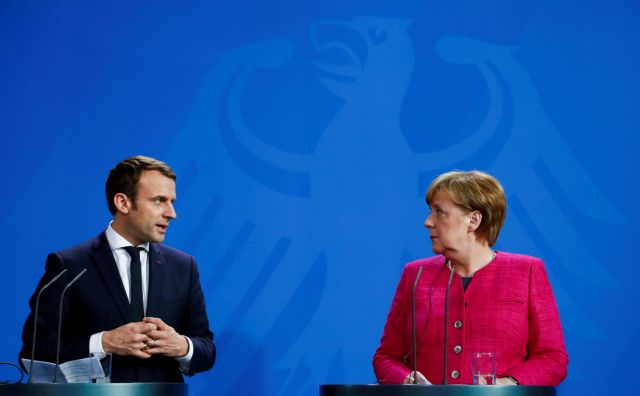 FILE PHOTO: German Chancellor Angela Merkel and French President Emmanuel Macron address a news conference at the Chancellery in Berlin, Germany, May 15, 2017. REUTERS/Fabrizio Bensch/File Photo (File: 2017-06-04T073458Z_1524398250_RC18B1B6B1F0_RTRMADP_3_GERMANY-FRANCE-EUROPE.JPG )