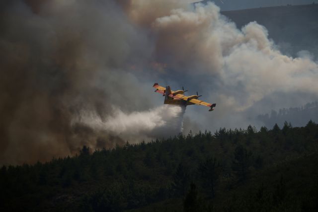 Εκπρόσωπος τύπου της αρχής πολιτικής προστασίας γνωστοποίησε γύρω στις 17.00 τοπική ώρα ότι συνετρίβη ένα Καναντέρ στην περιοχή Πεδρόγαου Γκράντε, κοντά στο χωριό Ουζέντα, όπου οι πυροσβεστικές δυνάμεις δίνουν μάχη με τις φλόγες από το Σάββατο. Η τεράστια πυρκαγιά έχει προκαλέσει τον θάνατο 64 ανθρώπων.