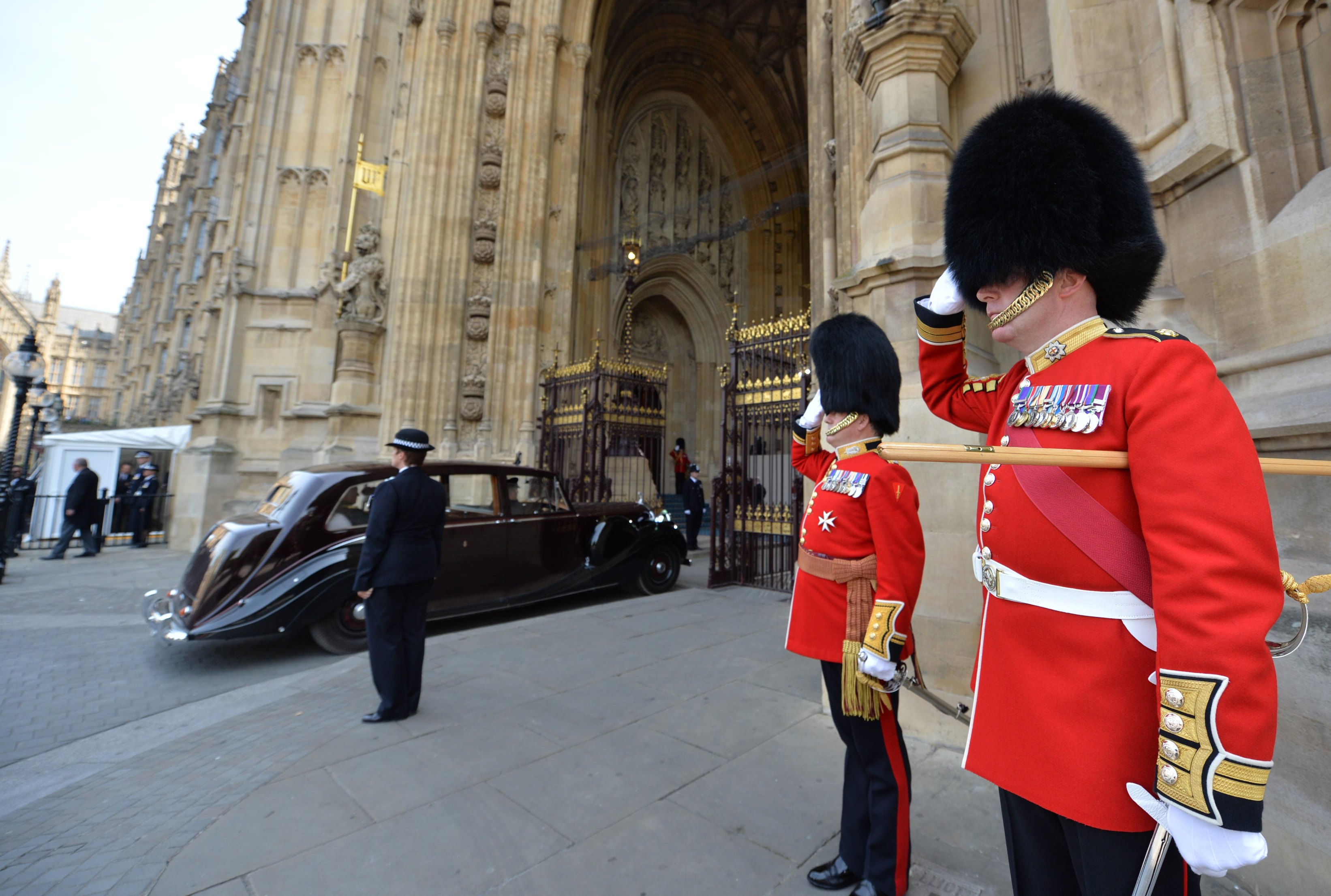 epa06040687 A handout image made available by the British Ministry of Defence (MOD) shows guards on duty prior the Queen's speech to open Parliament, in Westminster, London, Britian, 21 June 2017. The armed forces delivered a partly scaled down ceremony for this year’s State Opening of Parliament. Members of the Armed Forces were on public show and busy behind the scenes in a variety of ceremonial roles. This year, a snap election called for a trimmed down ceremony to mark the formal start of the next parliamentary session. The primary purpose is to set out the government's legislative agenda to both Houses of Parliament in the Queen's Speech. EPA/Sgt Rupert Frere / HANDOUT MANDATORY CREDIT: CROWN COPYRIGHT HANDOUT EDITORIAL USE ONLY/NO SALES (File: 18140400.jpg )