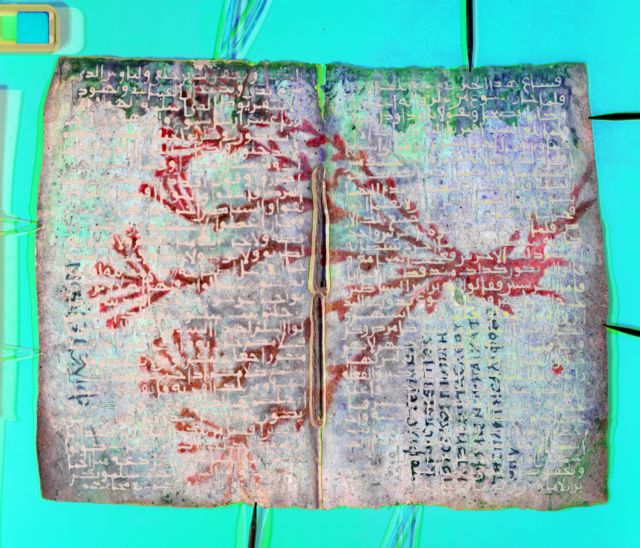 «Το νεότερο στρώμα γραφής έχει το κείμενο της Καινής Διαθήκης στα αραβικά και στο παλαιότερο αποσπάσματα από την Παλαιά Διαθήκη, την Καινή Διαθήκη, κομμάτια με λατινικό κείμενο, έναν κατάλογο βιβλίων και ιατρικά κείμενα που αποτελούνται από αποσπάσματα γνωστών έργων του Ιπποκράτη (