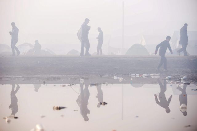 epa05205919 People stand around at a transit camp for migrants and refugees on a foggy morning on the Greek side of the Greek-Macedonian border near Idomeni, Greece, 11 March 2016. Thousands of migrants intending to reach western European countries are stranded in Greece as Slovenia, Croatia, Serbia and Macedonia have introduced special measures allowing migrants to enter their countries only according to the Schengen rules. EPA/ZOLTAN BALOGH HUNGARY OUT (File: 16377370.jpg )