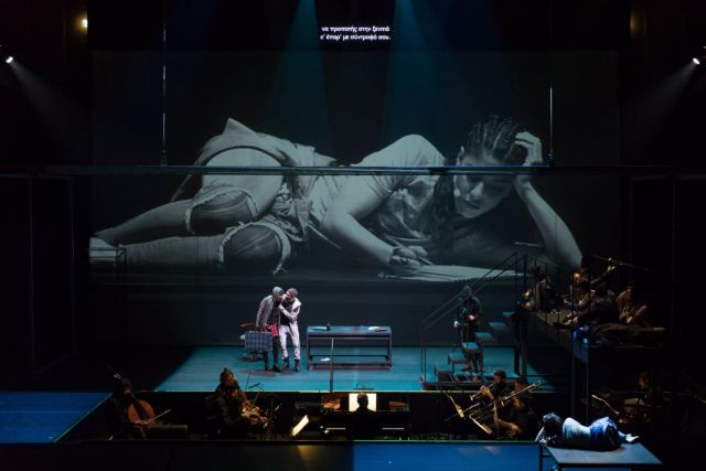 Στο ίδιο πλαίσιο κινείται επίσης η σκηνική απόδοση του Κωνσταντίνου Ρήγου, ο οποίος έστησε μια παράσταση με σύγχρονα υλικά και μινιμαλιστικό σκηνικό, αλλά και μια live κάμερα που εστιάζει στην ένταση των συναισθημάτων. Η σκηνοθεσία ακολουθεί το μουσικό κείμενο και τη γλώσσα του Ερωτόκριτου, και την ίδια στιγμή αναδεικνύει όλα εκείνα τα διαχρονικά ζητήματα που ενώνουν και ταυτόχρονα χωρίζουν την Αρετούσα και τον Ερωτόκριτο, με τη δραματική και επαναστατική ένταση ενός Ρωμαίου και μιας Ιουλιέττας.