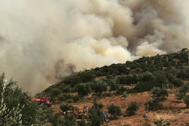 Υπενθυμίζεται ότι η φωτιά ξεκίνησε από τις παρυφές ενός λόφου όπου βρίσκονται σπίτι, ωστόσο στη συνέχεια κατευθύνθηκε προς την κορυφή καθώς στην περιοχή έπνεαν άνεμοι εντάσεως 5-6 μποφόρ που βοήθησαν το μέτωπο να «ανοίξει».