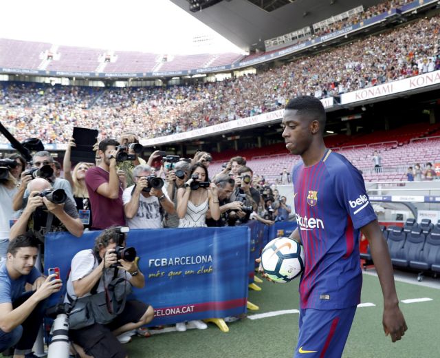 Παρουσία περίπου 18.000 φιλάθλων, έγινε τη Δευτέρα στο «Καμπ Νου» η επίσημη παρουσίαση του Ουσμάν Ντεμπελέ, της ακριβότερης μεταγραφής στην ιστορία της Μπαρτσελόνα.