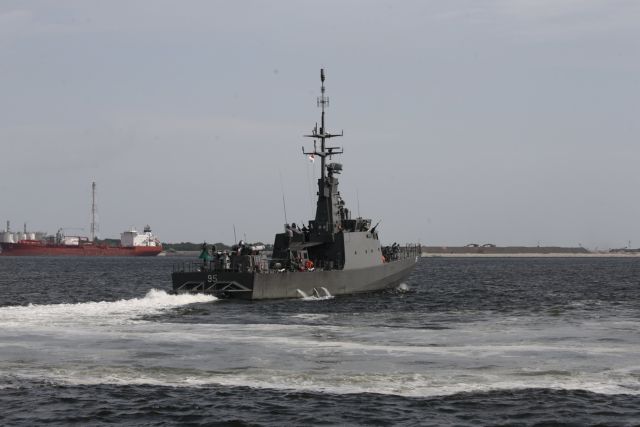 Το αντιτορπιλικό ελλιμενίζεται στη ναυτική βάση της Σιγκαπούρης, Τσανγί.