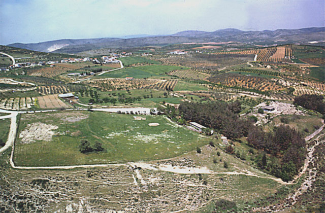 Στην περιοχή που εκτείνεται ανάμεσα στο λόφο και τον προαναφερθέντα μυκηναϊκό οικισμό βρισκόταν το ανακτορικό συγκρότημα του Διμηνίου, που ιδρύθηκε στις αρχές του 13ου αιώνα π.Χ. και συνίστατο από δύο μέγαρα, μικρότερα κτίσματα και μια εσωτερική αυλή.