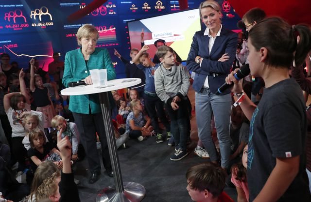 Μια διαφορετική συνέντευξη Τύπου έδωσε την Κυριακή η καγκελάριος ‘Αγγελα Μέρκελ, με παιδιά ηλικίας 6-14 ετών στη θέση των δημοσιογράφων που έθεταν τις ερωτήσεις. Τα παιδιά πάντως δεν της χαρίστηκαν, αφού έθεσαν ερωτήσεις για την κλιματική αλλαγή, τις πιθανές μετεκλογικές συνεργασίες, την ψηφιακή πολιτική, τον Ντόναλντ Τραμπ και τον Βλαντιμίρ Πούτιν, αλλά και τα χόμπι της, το πρώτο δόντι που της έπεσε, το ποδόσφαιρο και τις …πατάτες.