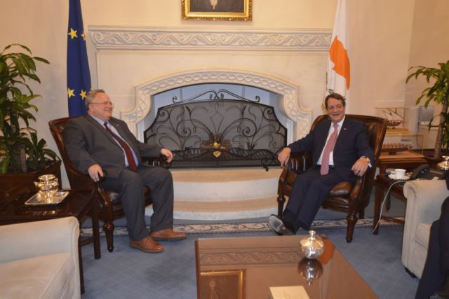 Σε δηλώσεις του στους δημοσιογράφους μετά τη συνάντηση, ο Έλληνας υπουργός Εξωτερικών χρακτήρισε τη συζήτηση με τον κ. Αναστασιάδη «για άλλη μία φορά χρήσιμη και παραγωγική».