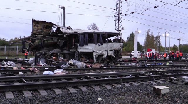 Τουλάχιστον 16 άνθρωποι, συμπεριλαμβανομένου και ενός παιδιού, πέθαναν όταν ένα τραίνο συγκρούστηκε με ένα λεωφορείο στη Ρωσία.