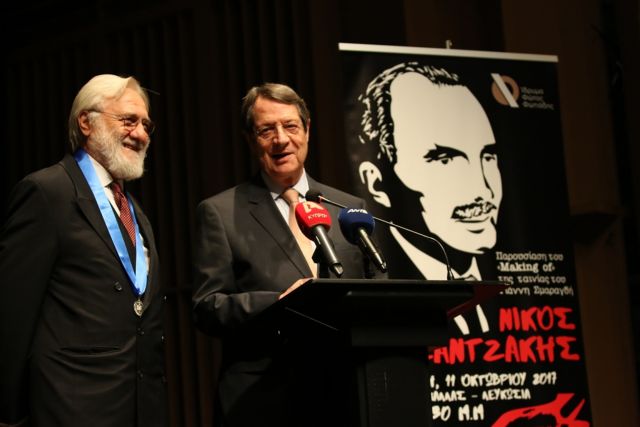 Απονέμοντας το μετάλλιο, ο Πρόεδρος της Κυπριακής Δημοκρατίας κ. Νίκος Αναστασιάδης ανέφερε ότι «εξήντα χρόνια μετά τον θάνατο ενός παγκόσμιου πολίτη, του Νίκου Καζαντζάκη, η ταινία του φίλου, Γιάννη Σμαραγδή, είναι μια άλλη σημαντικότατη προσφορά στην προβολή και το έργο του μεγάλου Κρητικού δημιουργού.» Διαβάστηκε επίσης χαιρετισμός του Υπουργού Εξωτερικών της Ελλάδος κου Νίκου Κοτζιά όπου εκτός άλλων ανέφερε για τον Γ. Σμαραγδή ότι «θα είμαστε δίπλα σας σε κάθε αντίστοιχη πολιτιστική δράση και ευχόμαστε η νέα σας ταινία για το Νίκο Καζαντζάκη να αναδείξει με την ίδια επιτυχία, αθέατες έως τώρα πτυχές της Ελληνικής ματιάς και γιατί όχι, να φωτίσει την καταγωγή του από την άλλη Ελληνική εστία της Μεσογείου, την Κύπρο μας.»