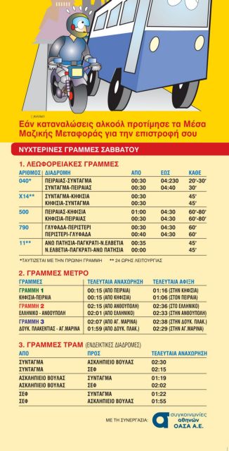 Με κεντρικό σύνθημα «Το αλκοόλ και η οδήγηση δεν πάνε μαζί», διοργανώνεται σήμερα η 11η «Ευρωπαϊκή Νύχτα χωρίς Ατυχήματα» σε 27 πόλεις της Ελλάδας, από το Ινστιτούτο Οδικής Ασφάλειας «Πάνος Μυλωνάς». Η ενέργεια πραγματοποιείται, όπως κάθε χρόνο, ταυτόχρονα με τη μεγάλη Πανευρωπαϊκή διοργάνωση, με στόχο την ενημέρωση και ευαισθητοποίηση κοινού και οδηγών για τους κινδύνους της οδήγησης υπό την επήρεια αλκοόλ.