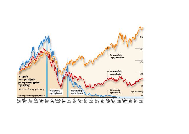 Σε 1,38 δισ. ευρώ περιορίστηκε σήμερα η συμμετοχή του Eλληνικού Δημοσίου μέσω του ΤΧΣ, από 22,66 δισ. ευρώ μετά την πρώτη ανακεφαλαιοποίηση στις τέσσερις συστημικές τράπεζες, καθώς ύστερα από τέσσερα σημαντικά stress tests, τρεις ανακεφαλαιοποιήσεις και ισχυρή αναδιάρθρωση και συγκέντρωση στον κλάδο η μετοχική αξία των τραπεζών μηδενίστηκε δύο φορές: με το PSI τον Φεβρουάριο του 2012 και με τη δεύτερη φάση της ελληνικής κρίσης τον Νοέμβριο του 2015, η οποία οδήγησε μάλιστα σε πρόσθετες απώλειες 25 δισ. ευρώ για το δημόσιο.