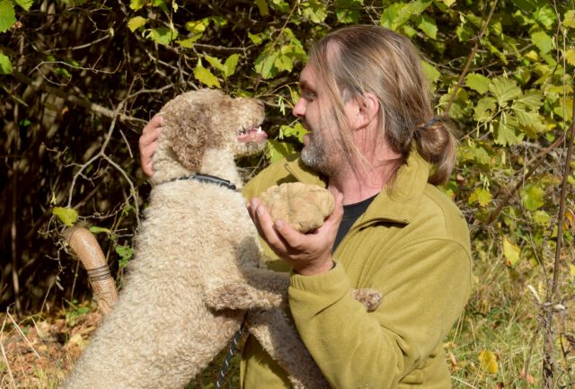 Τη λευκή αυτή τρούφα, την ανακάλυψε στα ελληνικά βουνά το τρουφόσκυλο του κ. Πλεσιώτη, ο Brio, και αποτελεί μία τεράστια επιτυχία, αν αναλογιστούμε ότι οι λευκές τρούφες ζυγίζουν συνήθως 50-150 γραμμάρια.