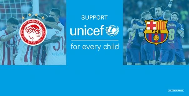 «Στις 21:45 την Τρίτη, 31 Οκτωβρίου, οι δύο Σύλλογοί μας, ο Ολυμπιακός και η Μπαρτσελόνα θα βρεθούν αντίπαλοι για μόλις 90 λεπτά στον αγωνιστικό χώρο του γηπέδου Γ. Καραϊσκάκης για τη φάση των ομίλων του UEFA Champions League. Όμως, μετά το τέλος του αγώνα, οι δύο Σύλλογοι, πέραν των ποδοσφαιρικών αναμνήσεών τους, θα συνεχίσουν να μοιράζονται έναν ισχυρό δεσμό καθώς είναι υπερήφανα ενωμένοι από τις σημαντικές συνεργασίες τους με την UNICEF για την ευημερία και την ασφάλεια των παιδιών σε όλο τον κόσμο. Η Μπαρτσελόνα άνοιξε τον δρόμο το 2006 και ο Ολυμπιακός ακολούθησε αυτό το σπουδαίο παράδειγμα το 2013, στηρίζοντας την UNICEF στη σημαντική προσπάθειά της για τα παιδιά που κινδυνεύουν και έχουν ανάγκη, σε όλο τον κόσμο. Μέχρι σήμερα ως μία ομάδα, το TEAM UNICEF, έχουμε επιτύχει τόσα πολλά για τα παιδιά σε όλο τον κόσμο και παραμένουμε προσηλωμένοι στην επίτευξη ακόμη περισσότερων στο μέλλον.