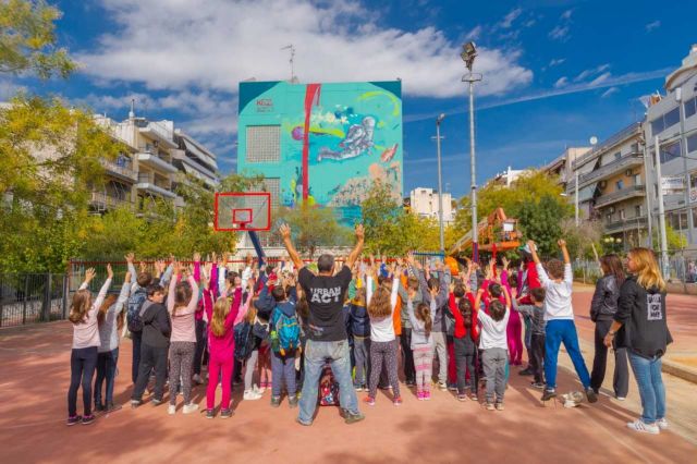 Ενα ακόμη σχολείο της Αττικής ομόρφυνε την περασμένη Δευτέρα με τη δράση Ζωγραφίζοντας Σχολικά Κτίρια –Ομορφαίνουμε τις Γειτονιές μας που πραγματοποίησαν τα OK! Anytime Markets σε συνεργασία με την Urban Act.