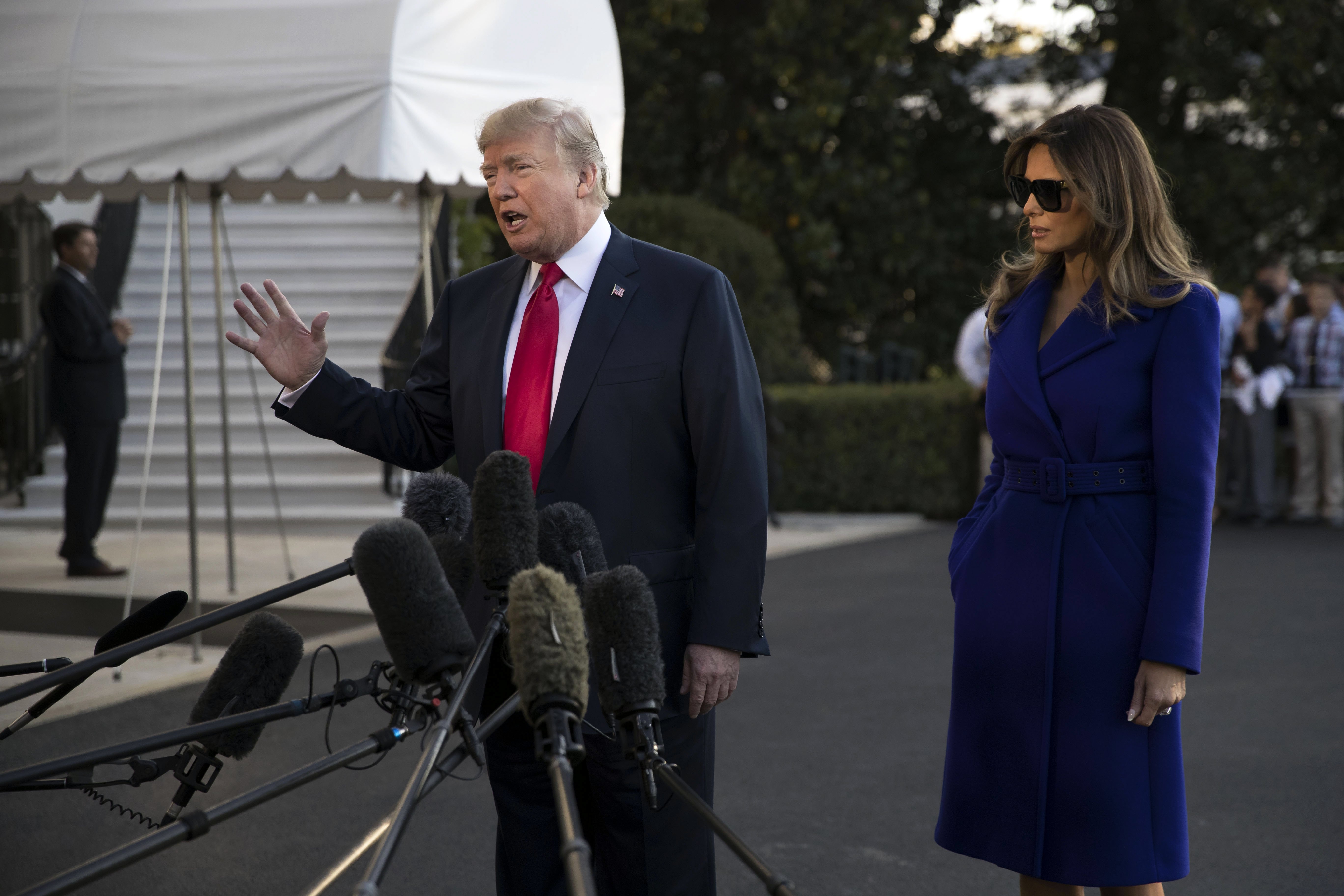 «Θα μείνουμε άλλη μία ημέρα στις Φιλιππίνες. Έχουμε μια μεγάλη σύνοδο, τη δεύτερη σύνοδο, και πιστεύω ότι θα έχουμε μεγάλη επιτυχία» είπε ο Τραμπ από τους κήπους του Λευκού Οίκου. Πρόσθεσε ότι στο ταξίδι του θα έχει συνομιλίες σχετικές με τις εμπορικές συναλλαγές και «φυσικά θα μιλήσουμε για τη Βόρεια Κορέα».