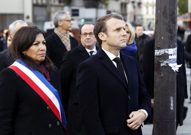 Για πρώτη φορά με την ιδιότητα του προέδρου, ο Εμανουέλ Μακρόν αποτίει φόρο τιμής στα θύματα των τρομοκρατών που αιματοκύλισαν το Παρίσι και το Σεν Ντενίς την 13η Νοεμβρίου του 2015.